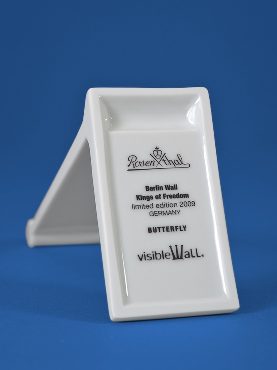 There were several butterfly designs on the historical Berlin Wall, such as the famous picture on the Ronald Reagan Wall L-segment, now on display at the Ronald Reagan Presidential Library in Simi Vally, California.